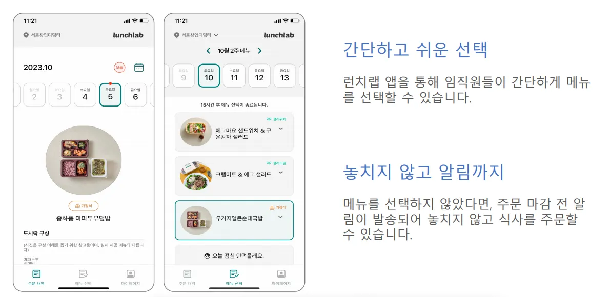 ‘오늘 점심 안먹을게요.’ 를 선택해주세요.